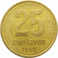 Reverse legend: 25 centavos 1992