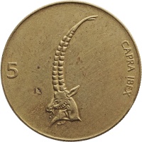 Reverse: The head of a Alpine Ibex with its name in Latin to the right and the numerical value to the left