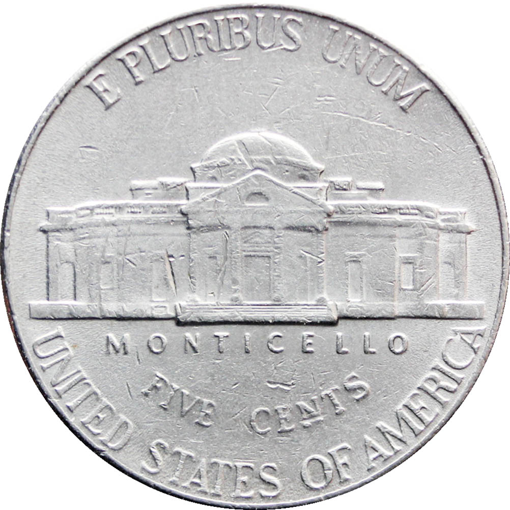 Reverse legend: “E PLURIBUS UNUM MONTICELLO FIVE CENTS UNITED STATES OF AMERICA”