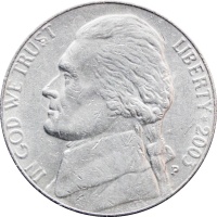 Obverse: The portrait in left profile of Thomas Jefferson, the 3rd President of the United States from 1801 to 1809.