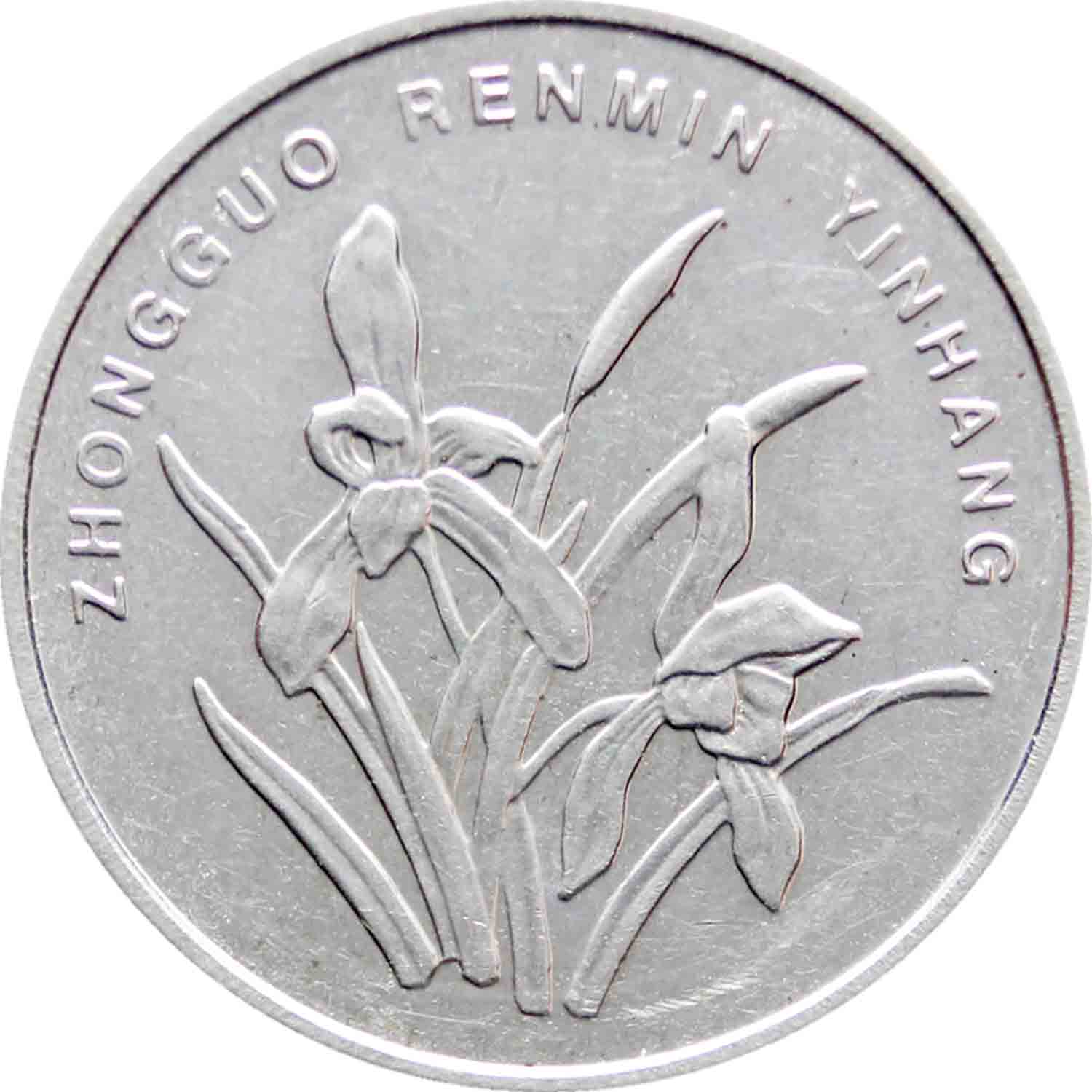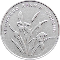 Obverse: Orchid blossom and legend in Pinyin