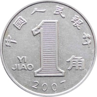 Reverse legend: “中国人民银行 1 YI JIAO 角 2007”