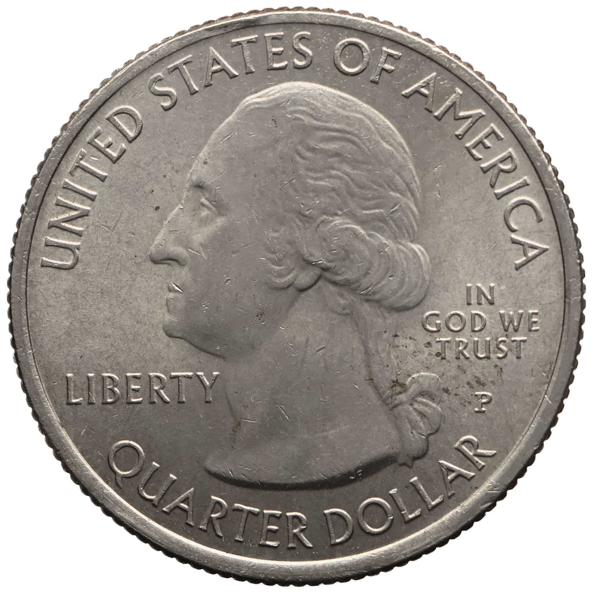 Obverse: The portrait in left profile of George Washington, the first President of the United States from 1789 to 1797.