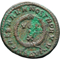 Reverse legend: “VOT / . / X / CAESARVM NOSTRORVM TS ΔVI”
