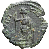 Reverse: Securitas standing facing, looking right, left elbow leaning on Column, legs crossed, holding Sceptre