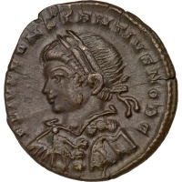 Obverse: Laureate Draped and Cuirassed, bust of Constantius II facing left