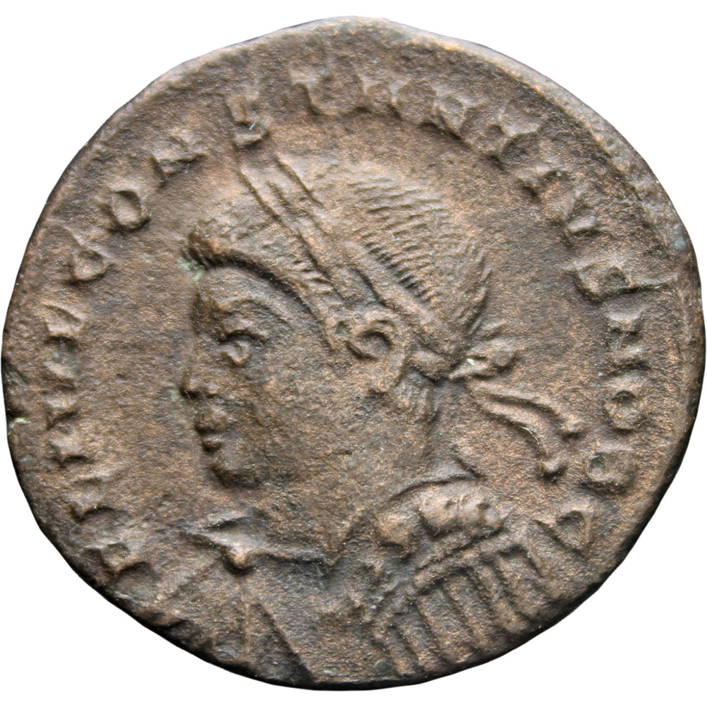 Obverse: Laureate Draped and Cuirassed, bust of Constantius II facing left
