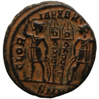 Obverse: Pearl-Diademed, Draped and Cuirassed, bust of Constantius II facing right