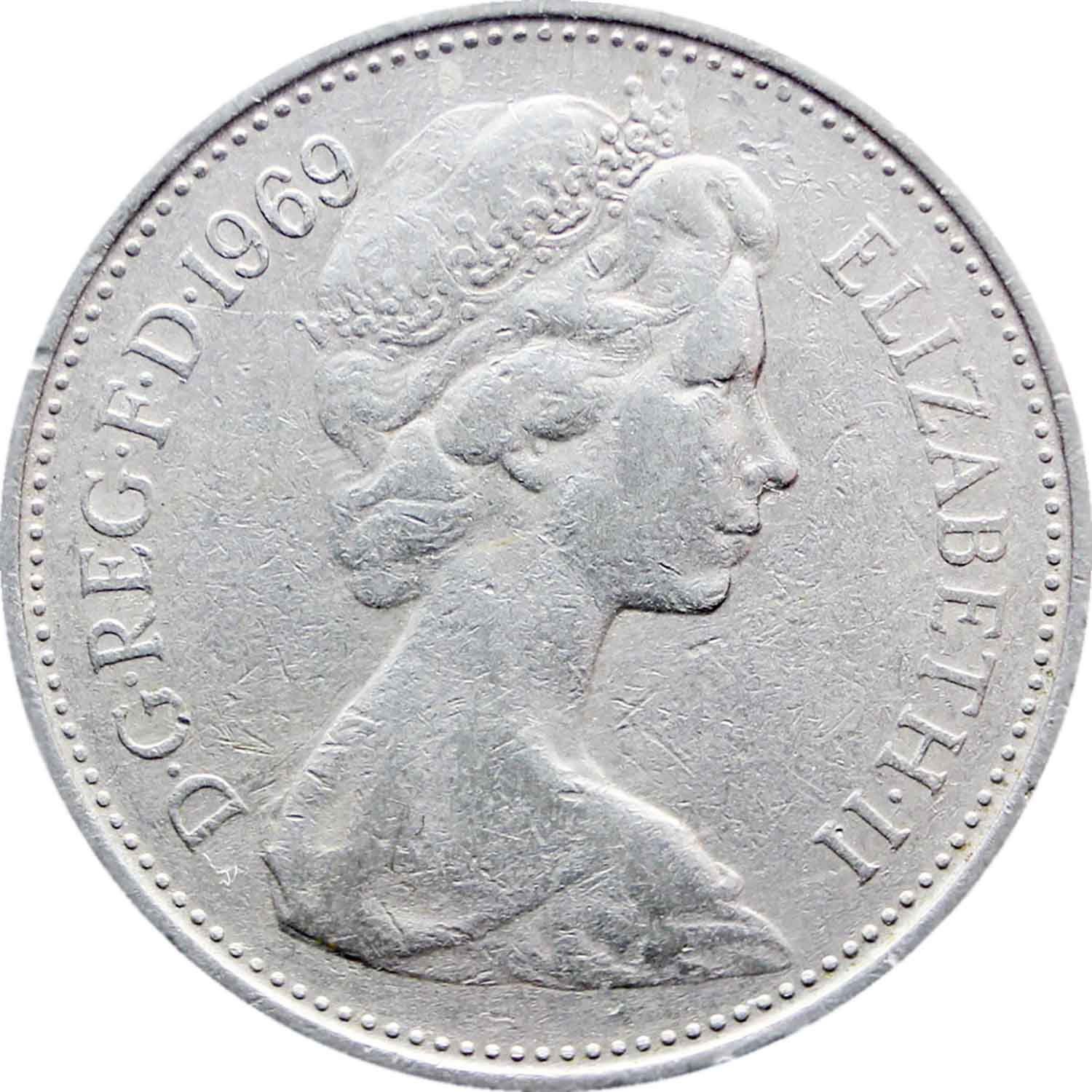 Obverse legend: “DGREGFD1969 ELIZABETHII”