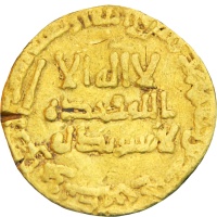 Reverse: Middle legend in Kufic"Muhammad is the Apostle of God" around legend in Kufic "In the name of God this dinar was in year six and sixty and one hundred strucked''