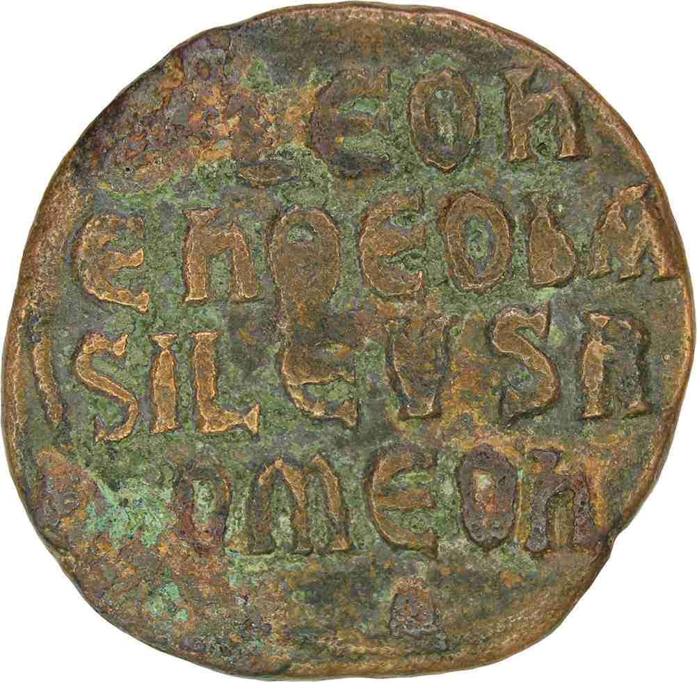 Reverse legend: “+ LEOn/En ΘΕΟ bA/SILEVS R/OMEOn.”