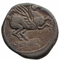 Reverse: Pegasus springing right; moneyer mark on tablet below.