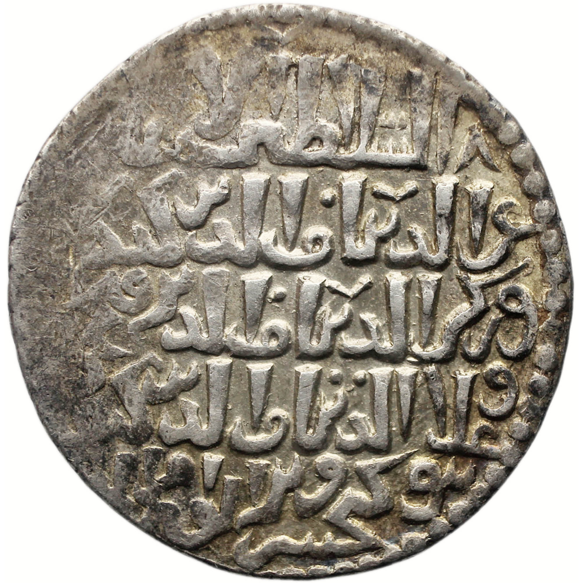 Obverse legend: لا إله إلا الله محمد رسول الله الإمام المستعصم بالله أمير المؤمنين ضرب سنة ستمائة وسبعة وأربعين