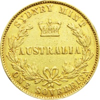 Reverse: At centre within a laurel wreath AUSTRALIA under a royal crown; above, SYDNEY MINT; below, ONE SOVEREIGN
