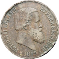 Obverse legend: “PETRUS II D.G.C.IMP. ET PERP.BRAS.DEF. 1869 C.L.”