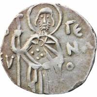 Obverse: standing facing figure of Saint Evgenius holding long cross in right hand.