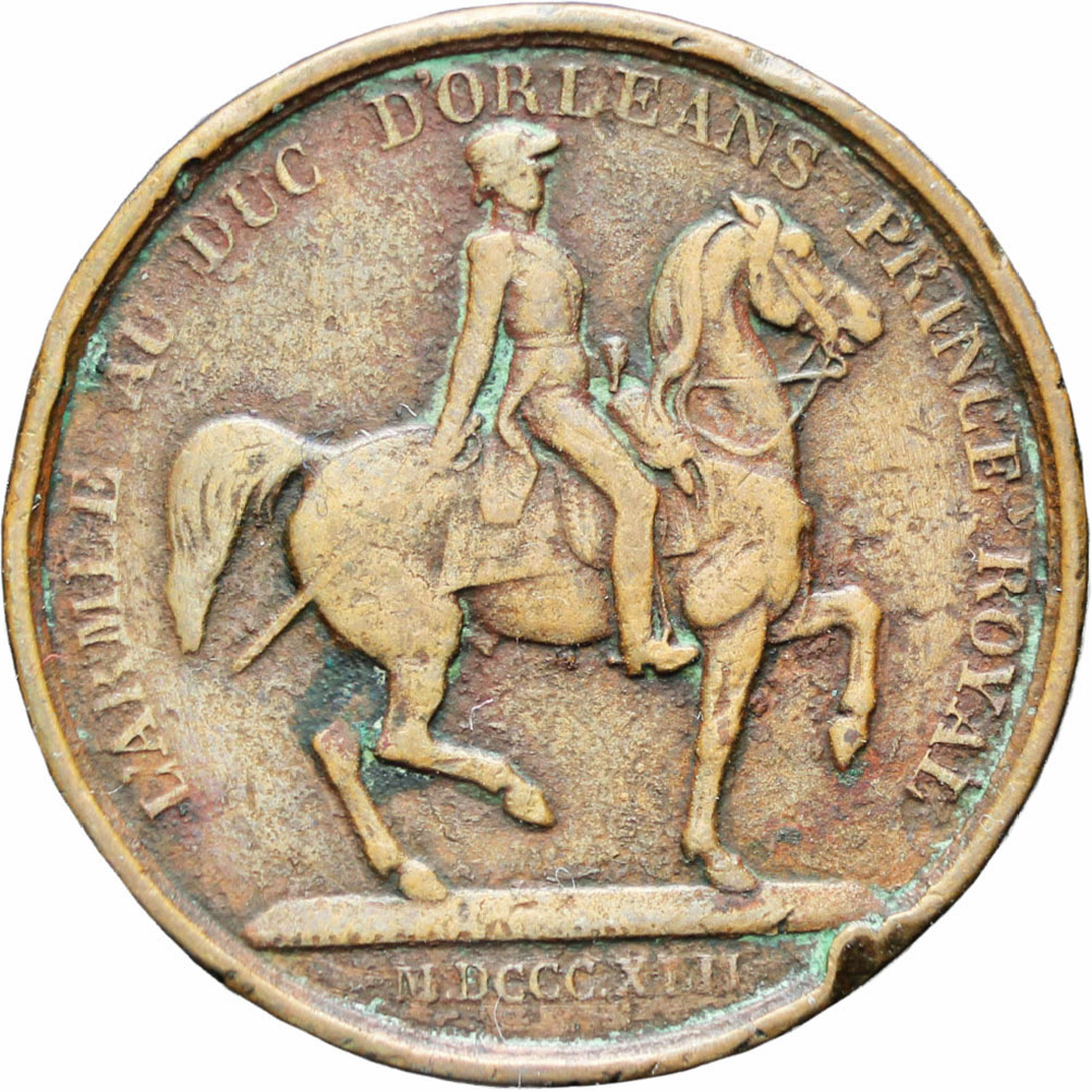Obverse: head of Ferdinand II to right.. Obverse legend: “LOUIS PHILIPPE I / ROI DES FRANCAIS” Reverse: Soldier on horseback Reverse legend: “L'ARMEE AU DUC D'ORLEANS PRINCE ROYAL ” M.DCCC.XLII.” Country: France Year: 1842 Metal: Bronze Weight approx.: 8.70 g. Diameter approx.: 24 mm Authenticity unconditionally guaranteed !