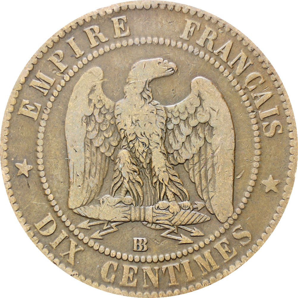 Reverse legend: “EMPIRE FRANÇAIS W DIX CENTIMES”