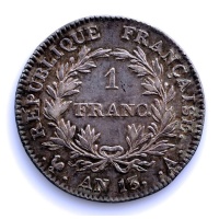 France. Napoléon I (1804-1814). 1 Franc An 13-A, Paris