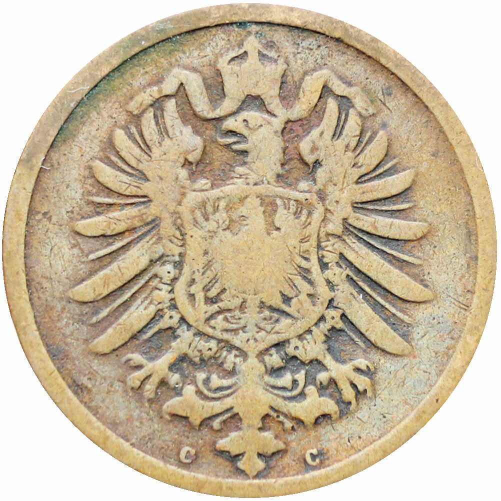 Reverse legend: “DEUTSCHES REICH 1875 2. PFENNIG. ”