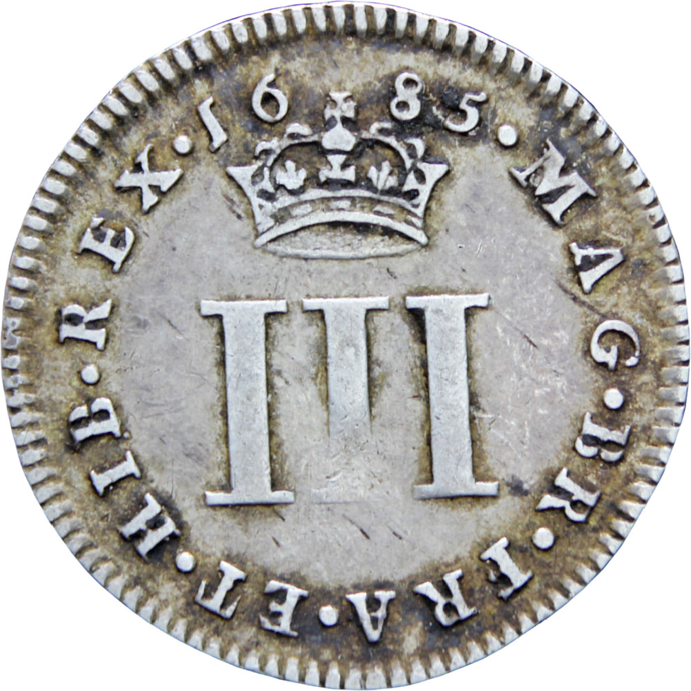 Reverse legend: “MAG•BR•FRA•ET•HIB•REX •16 85• III”
