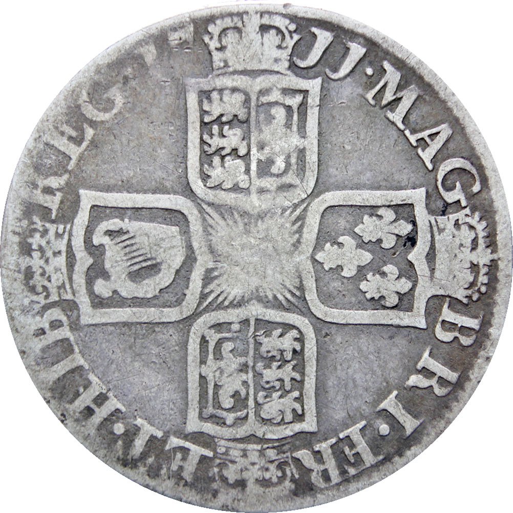 Reverse legend: “MAG•BRI•FR•ET•HIB•REG• 17 11”