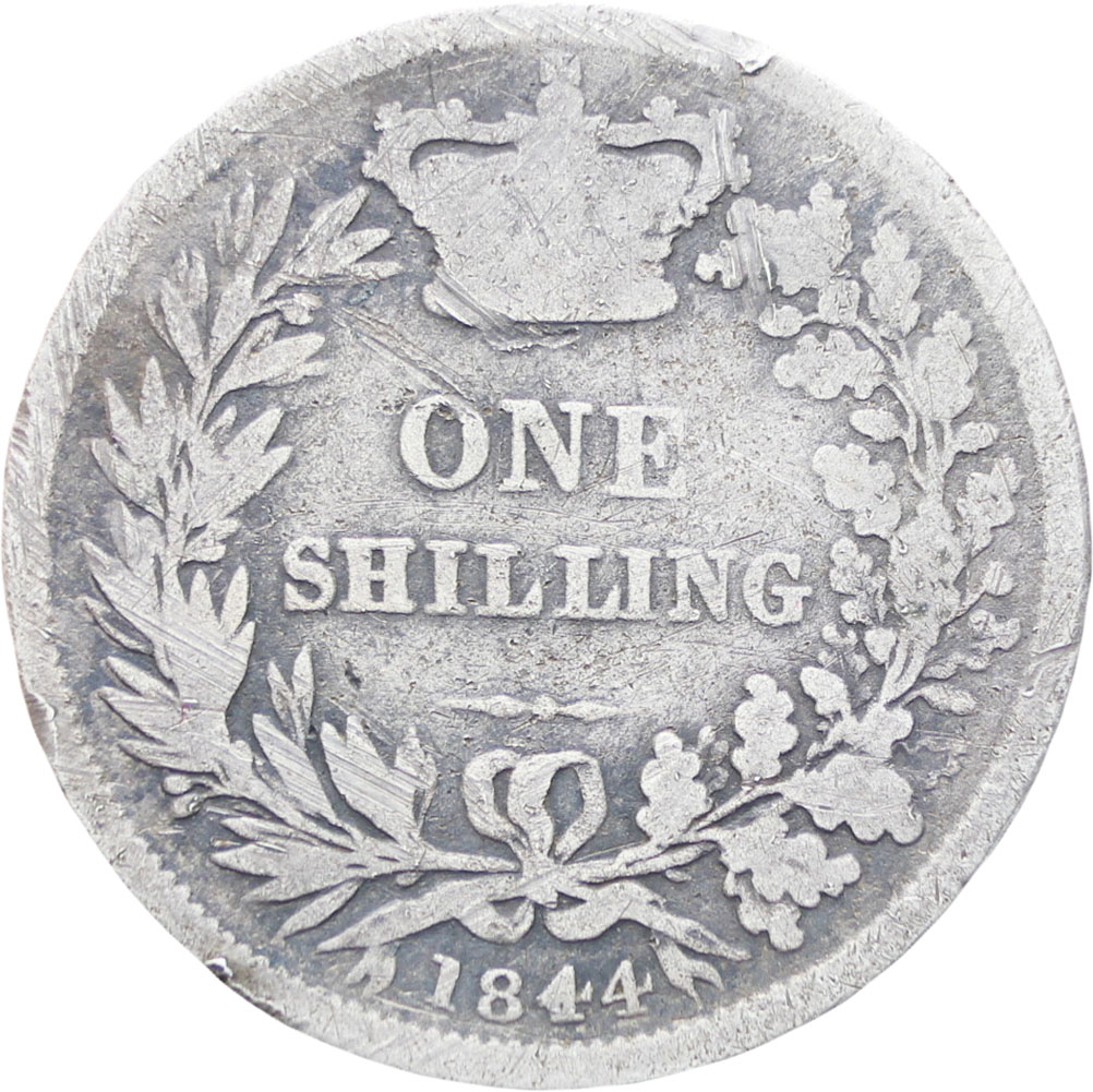 Reverse legend: “ONE SHILLING 1844”