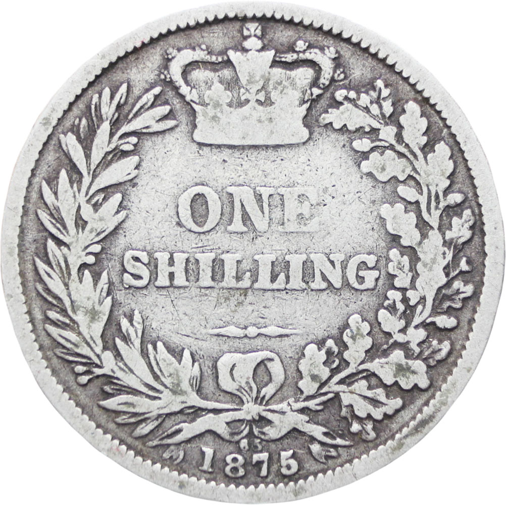 Reverse legend: “ONE SHILLING 1875”