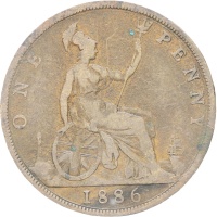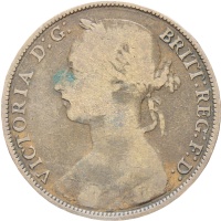 Obverse: The wreathed portrait of the Queen Victoria, facing left.