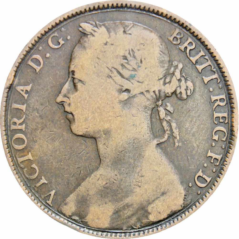 Obverse: The wreathed portrait of the Queen Victoria, facing left.