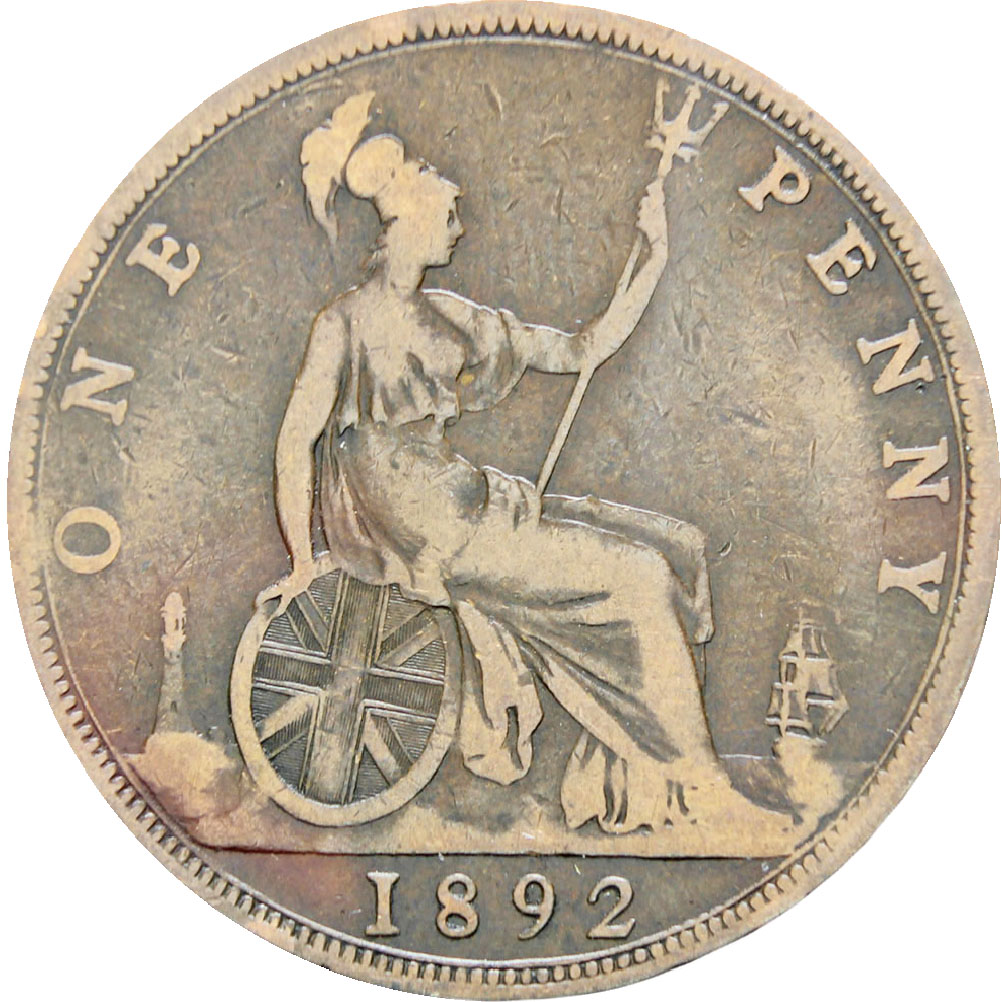 Reverse legend: “ONE PENNY 1892”