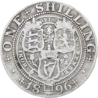 Reverse legend: “ONE SCHILLING • 1896 ••HONI•SO QVI• V• PENSE•”