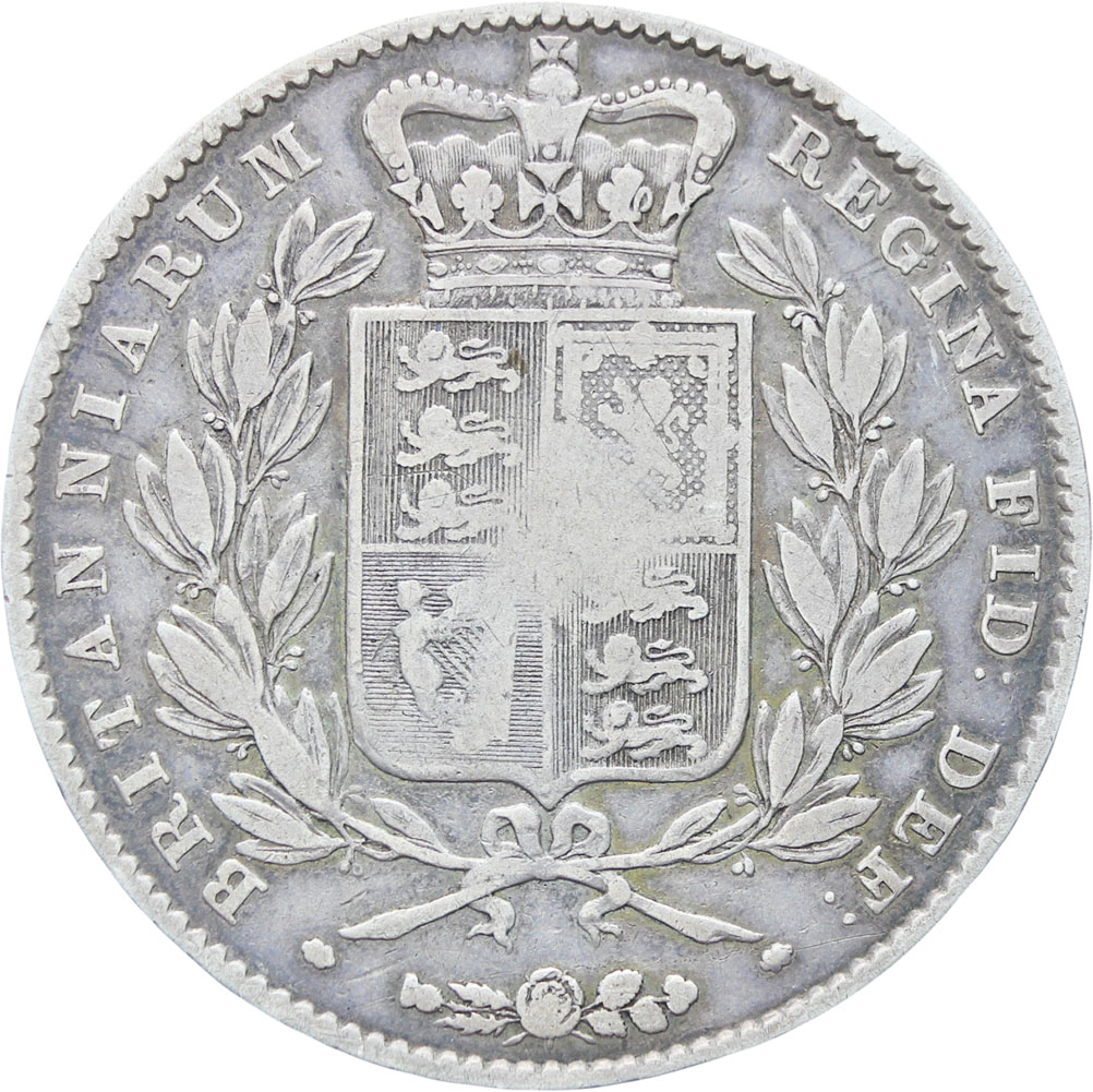 Obverse: Head of the Queen facing left wearing ribbon in hair; in small letters on neck truncation the artist's name W. WYON R.A.; around, VICTORIA DEI GRATIA; below, 1844