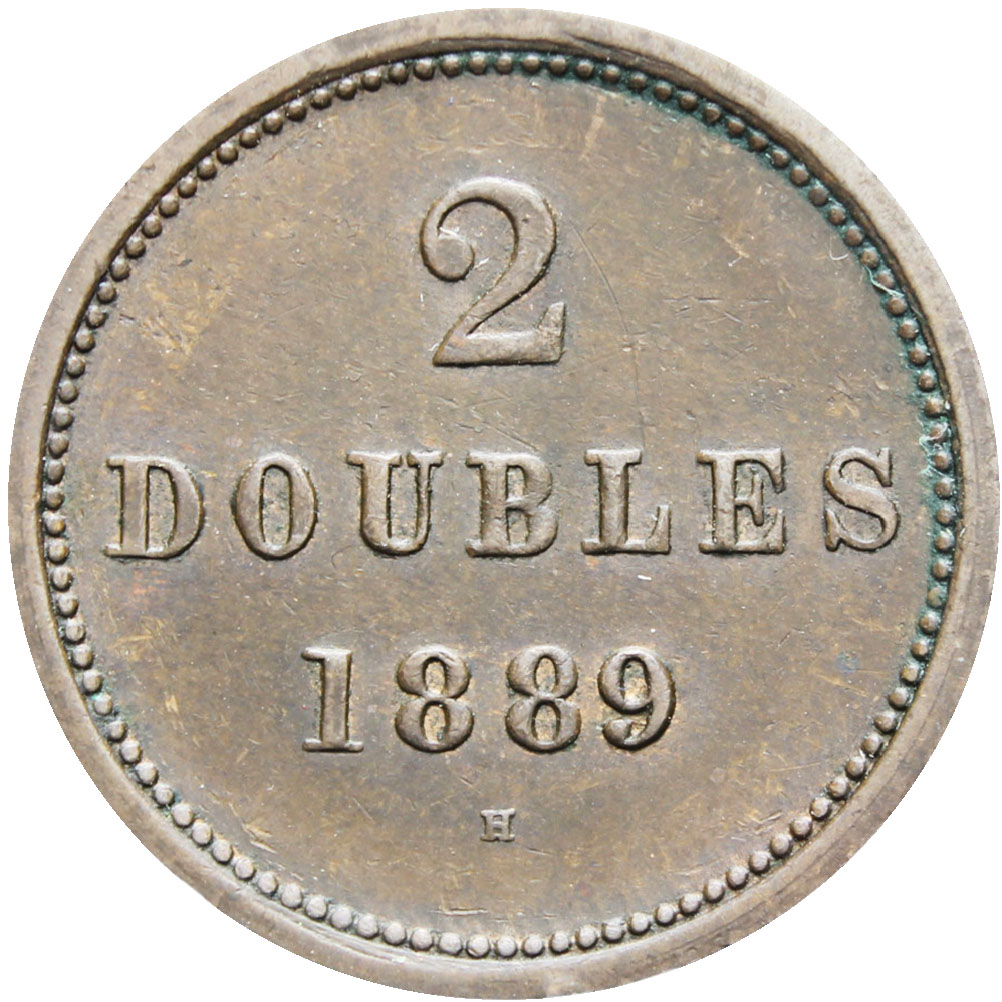 Reverse legend: “2 DOUBLES 1889”