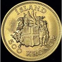 Iceland 1961 gold 500 Kronur commemorative coin, .900 gold, weight 8.9604 g, diameter 23.00 mm, thickness 1.50 mm, milled, issued for the 150th anniversary of the birth of Jón Sigurðsson, non-circulating, mintage 10,000.