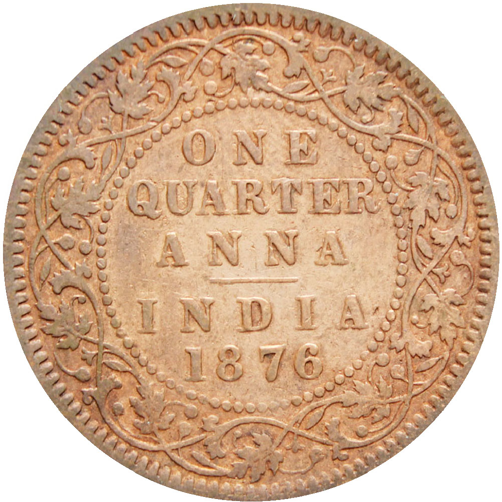Reverse legend: “ONE QUARTER ANNA INDIA 1876”