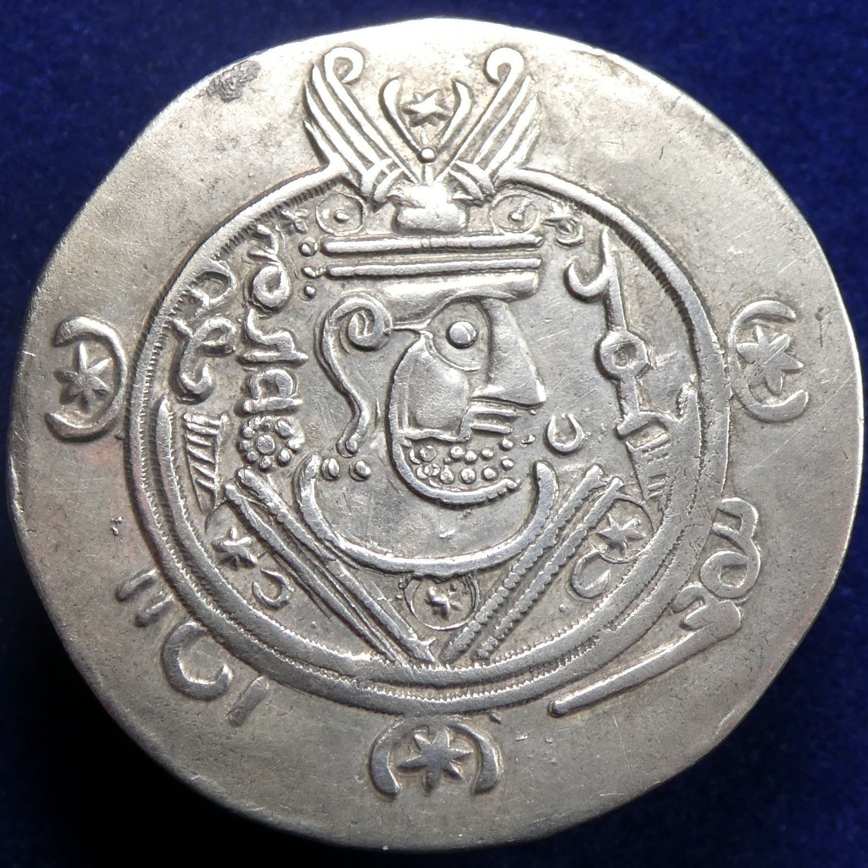 slamic Coinage — ʿAbbasid Caliphate, Time of al-MahdīCaliph: al-Mahdī (AH 158–169 / AD 775–785)Governor named: ʿUmar ibn al-ʿAlāʾ, Governor of Tabaristan (AH 154–163 / AD 771–780)Denomination: AR Hemidrachm (Silver)Mint: TabaristanDate: PYE 127 = AH 162 / AD 778–779Weight: 1.90 gDiameter: 23 mmReference: Album 56________________________________________ObverseCrowned and draped Sasanian-style bust facing right.Behind the head, Pahlavi legend:AFZUT GDH(“May his glory increase...