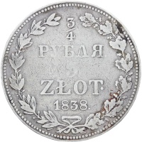 Reverse legend: “3/4 РУБЛЯ 5 ZLOT.”