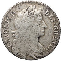 Obverse: Laureate and draped bust of King Charles II right, legend around. Fourth bust.