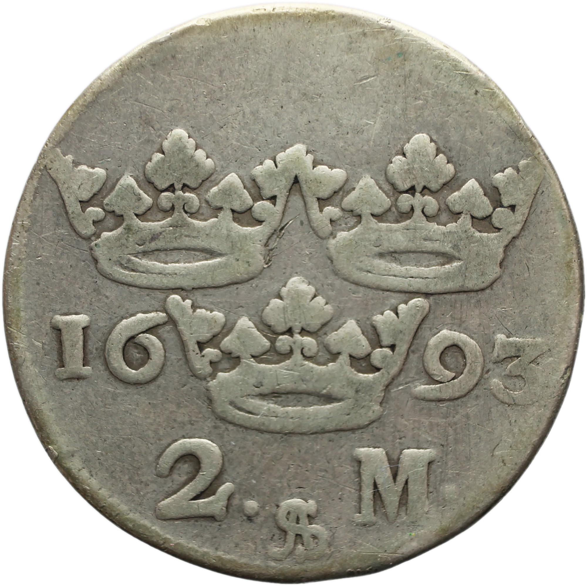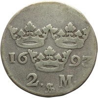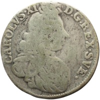 Obverse: Bust of King Charles XI facing right. Type III (Bigger bust with flowing hair.)