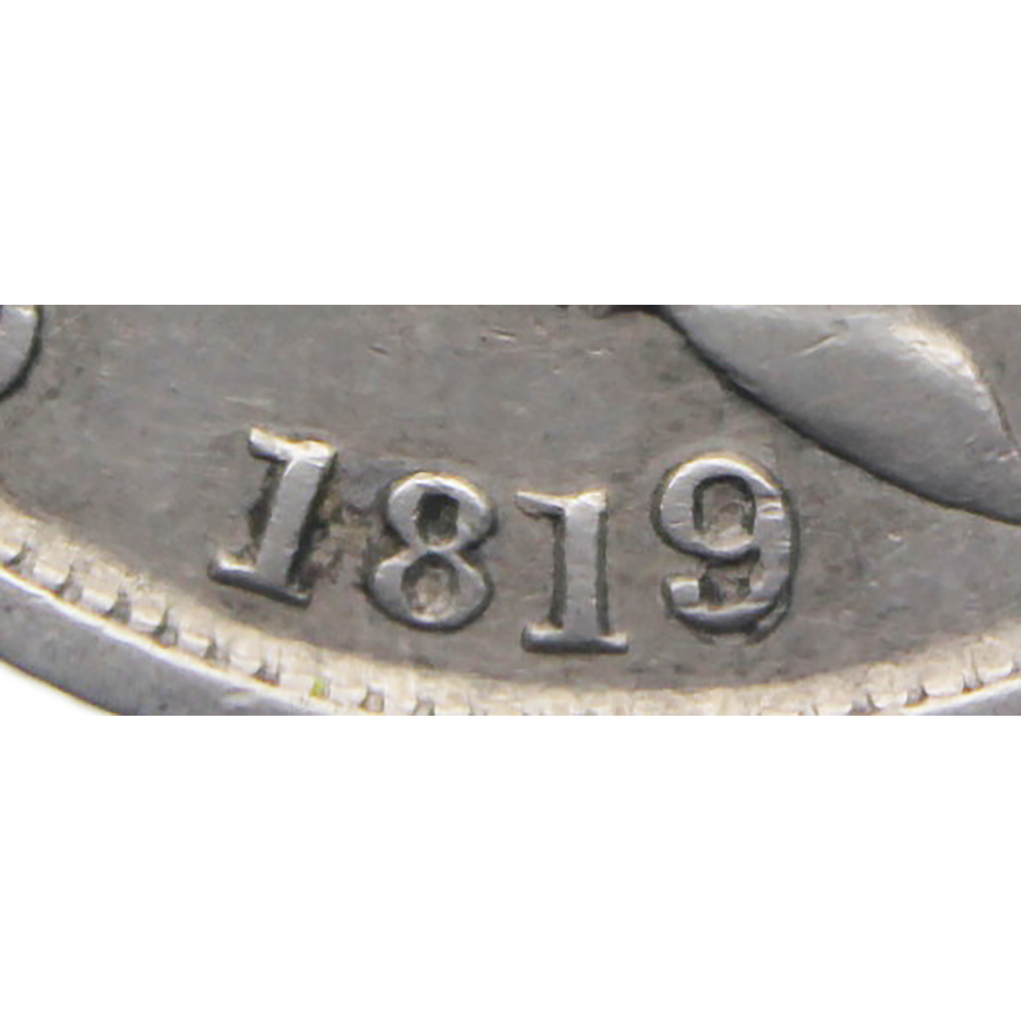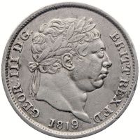 Obverse: Laureate head of the King facing right; around, GEOR III D G BRITT REX F D ; below, 1819
