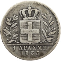 Reverse legend: 1 ΔΡΑΧΜΗ 1833