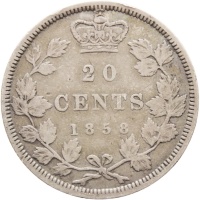 Reverse legend: 20 CENTS 1858
