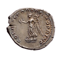 Trajan AD 98-117. Rome Denarius AR 20mm., 3,14g. IMP TRAIANO AVG GER DAC P M TR P, laureate head of Trajan right, with aegis / COS V P P S P Q R OPTIMO PRINC, Victory standing left on pile of shields, wreath upward in right hand, palm in left. very fine RIC 129 var. (drapery on left shoulder).