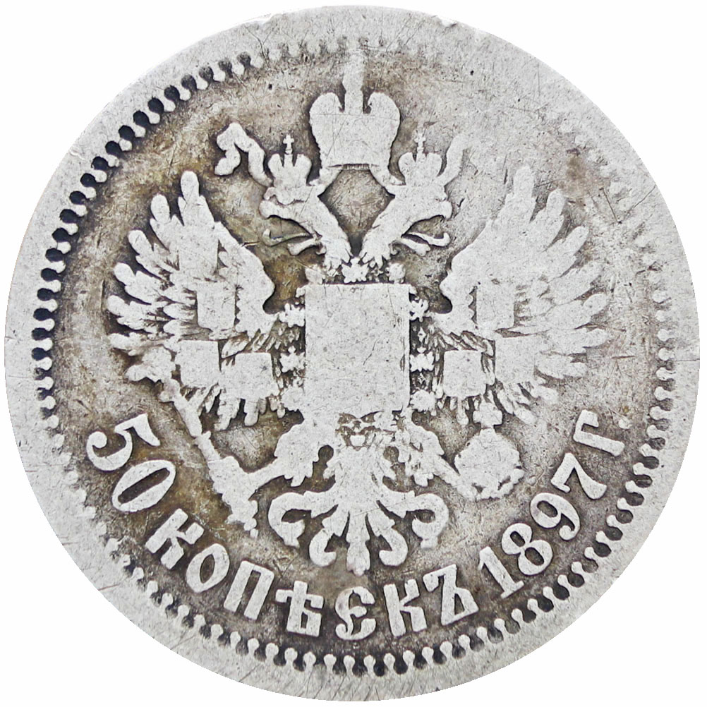 Reverse legend: “50 КОПѢЕКЪ 1897Г.