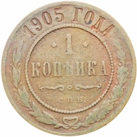 Obverse legend: “1905 ГОДА *1* КОПѢЙКА С.П.Б.”