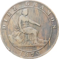 Obverse legend: “DIEZ GRAMOS 1870 L MARCHIONNI”