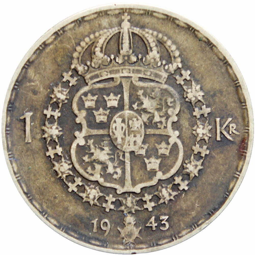 Reverse: Swedish coat of arms with Seraphim Order chain divides value and date (Crosslet 4)