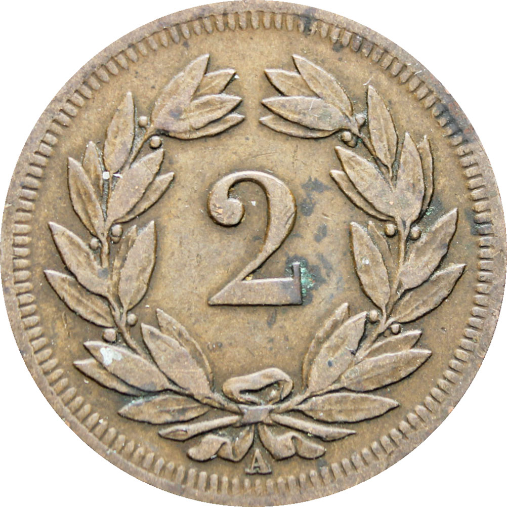 Obverse: Swiss escutcheon, on branches of oak and laurel.
