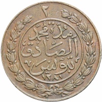 Reverse legend: “۲ تونس ۱۲۸۱”